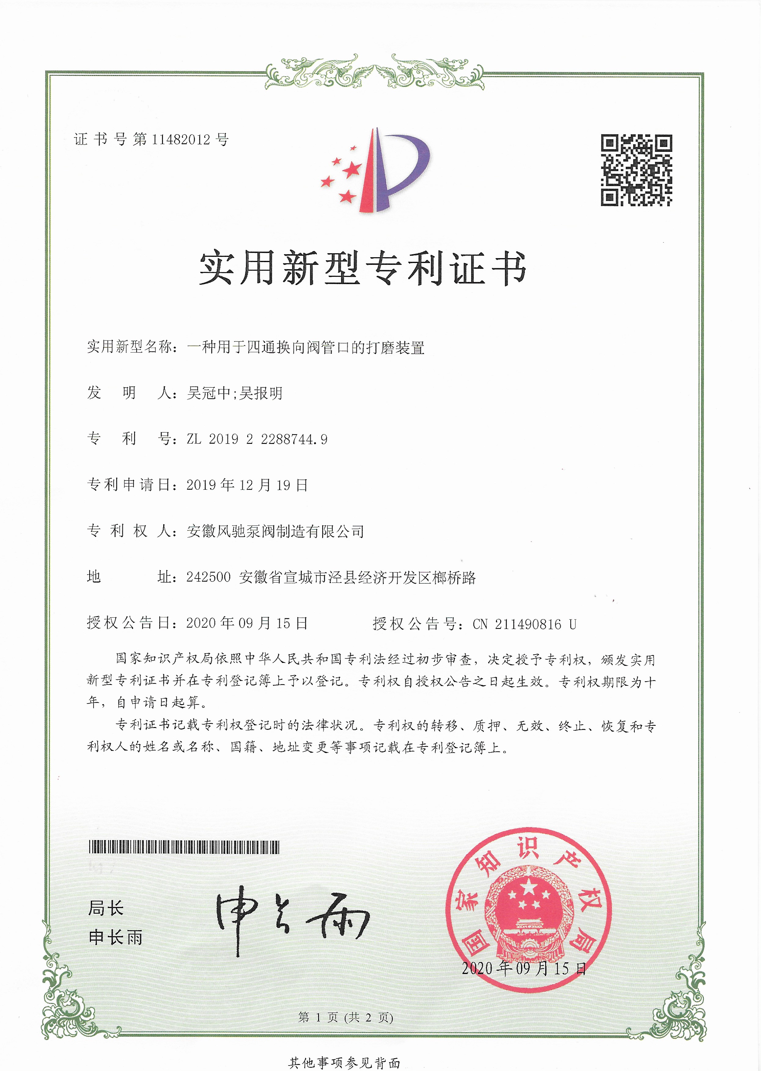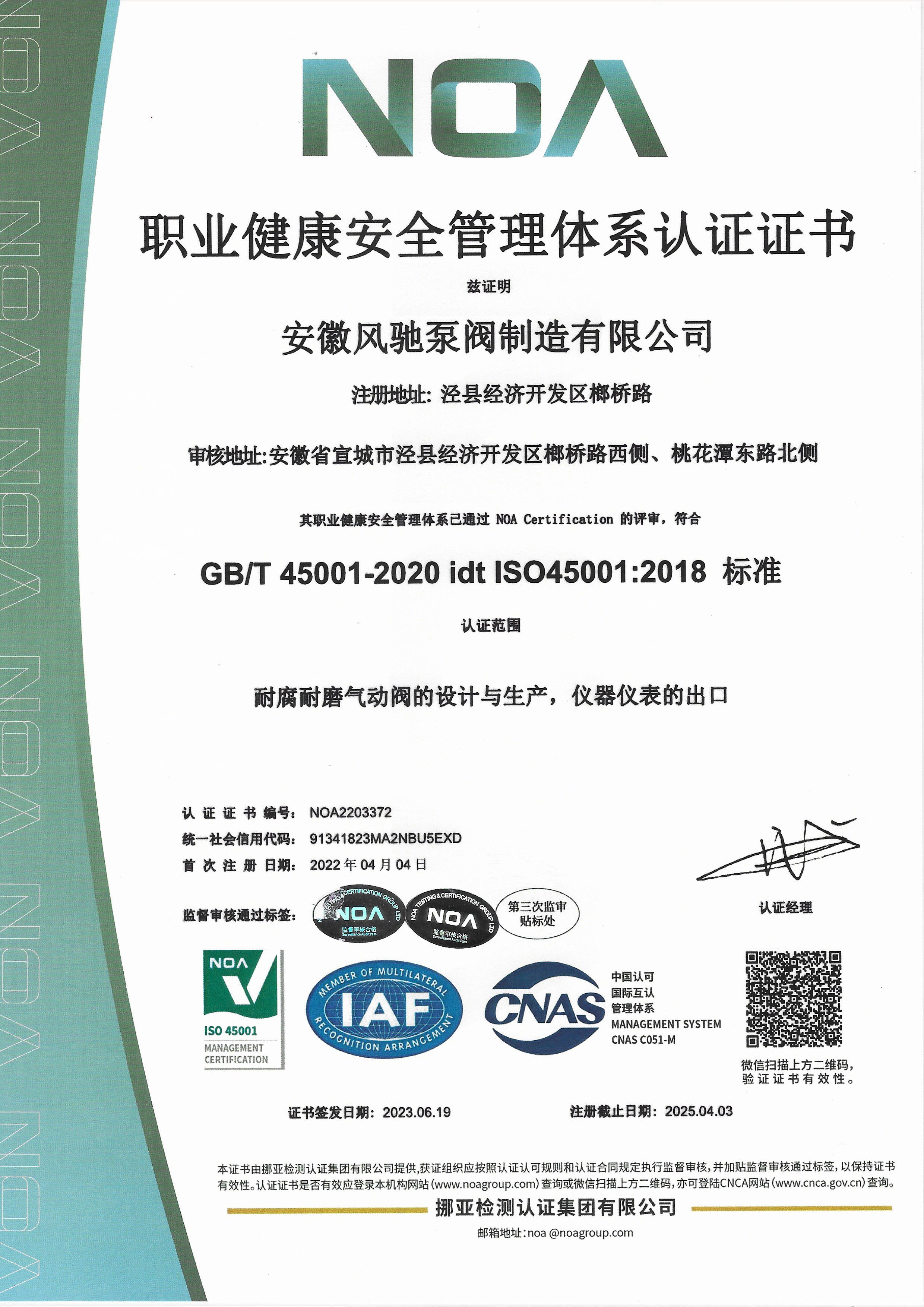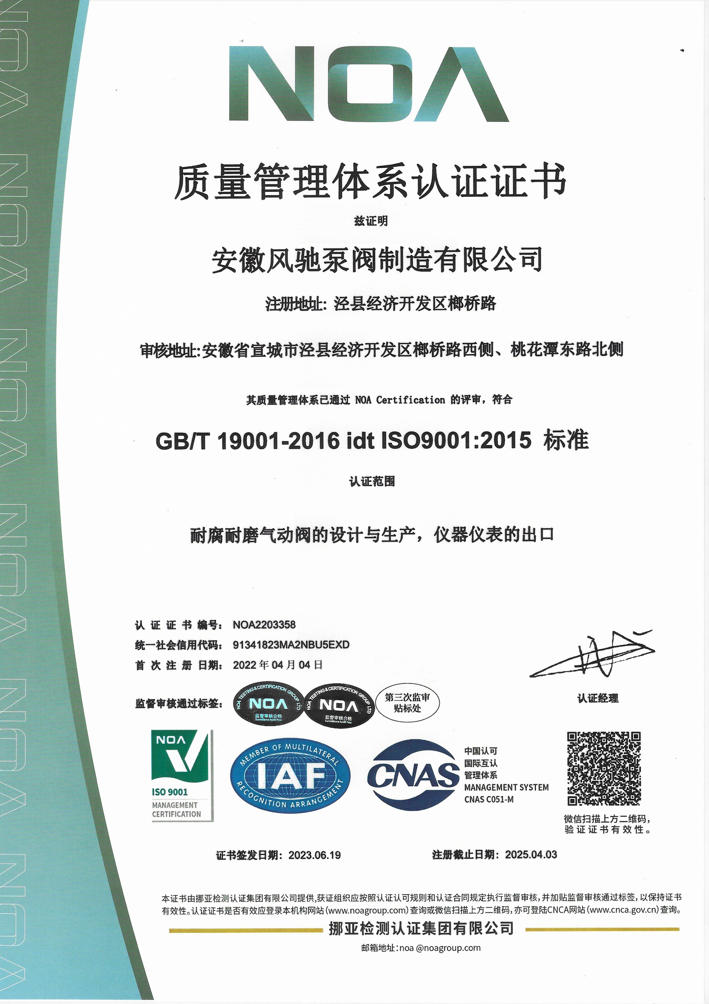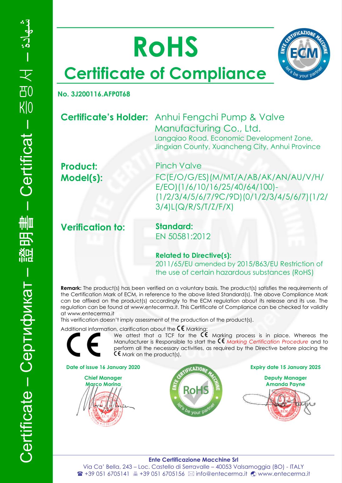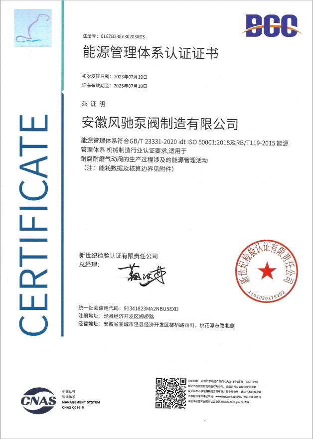 Anhui Fengchi Pump and Valve Manufacturing Co., Ltd.는 ISO9001-2015 품질 관리 시스템 인증, ISO14000 환경 관리 시스템 인증, ISO45001 직업 보건 및 안전 관리 시스템 인증, EU CE 인증, Rohs 인증을 연속적으로 통과했습니다.